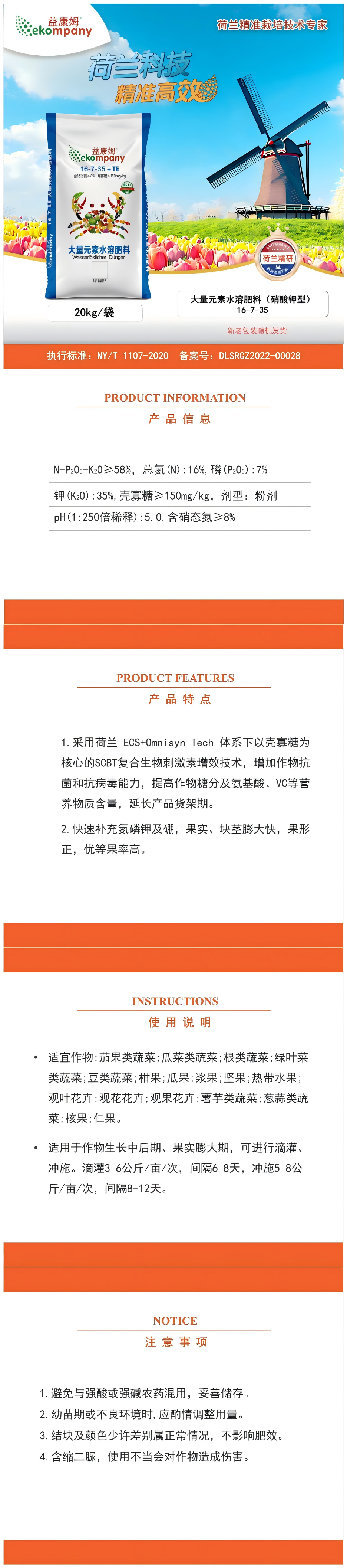 20kg ekompanyS58%大量元素水溶肥料硝酸钾型16-7-35
