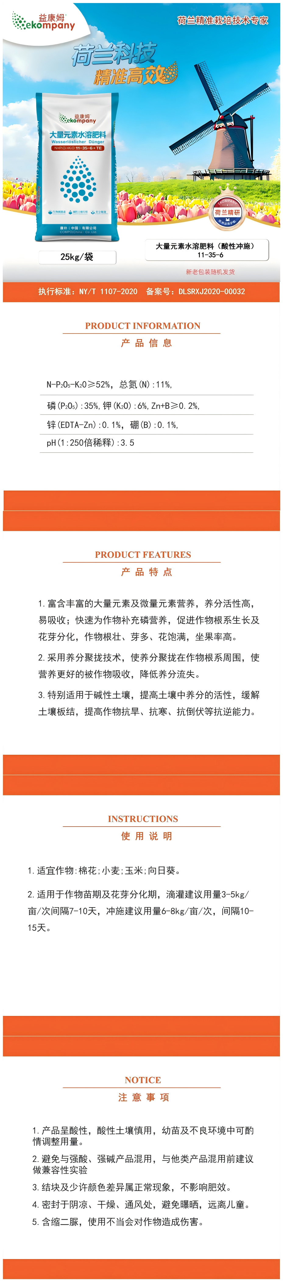 25kg ekompany冲施肥SCCL52%大量元素水溶肥料11-35-6