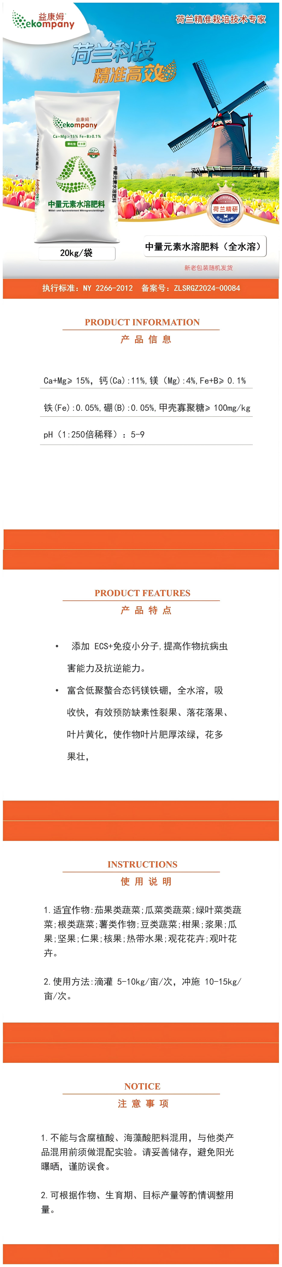 20kg ekompany中量元素水溶肥料(颗粒)