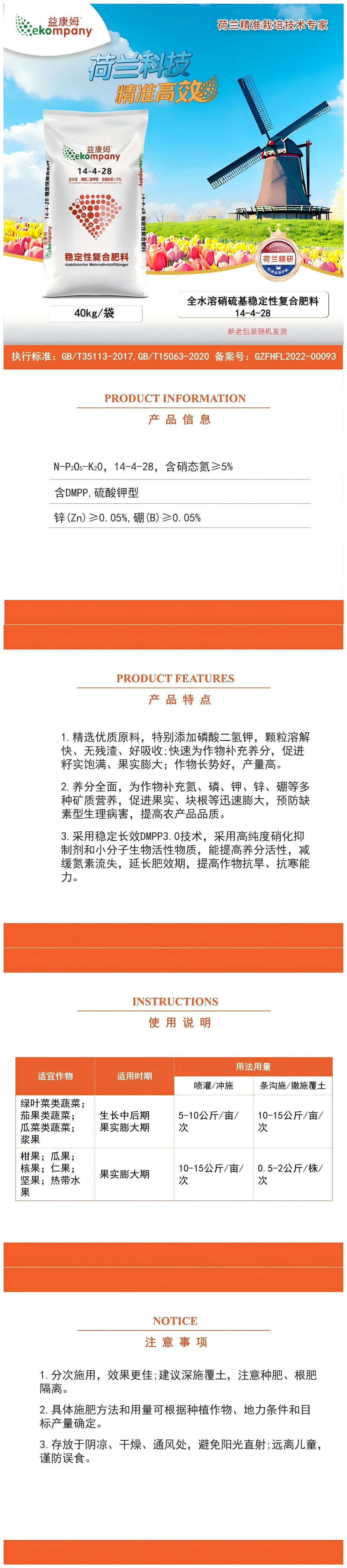 40kg ekompany 全水溶硝硫基稳定性复合肥料 17-4-28